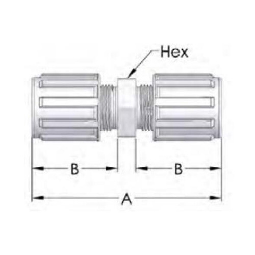 | Part No. | Tube OD | Orifice | A | B | HEX |