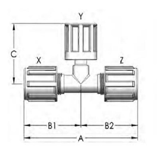 | Part No. | X | Y (Space Saving) | Z | Orifice | A | B1 | B2 | C |