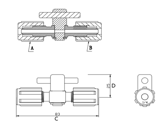 PPV0041 | 1/4” | PTFE+PFA | 1/4”扩口 | 1/4”扩口 | 83 | 25 |