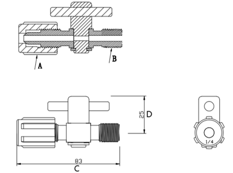 PPVM04041 | 1/4” | PTFE+PFA | 1/4”扩口 | 1/4”NPT | 83 | 25 |
